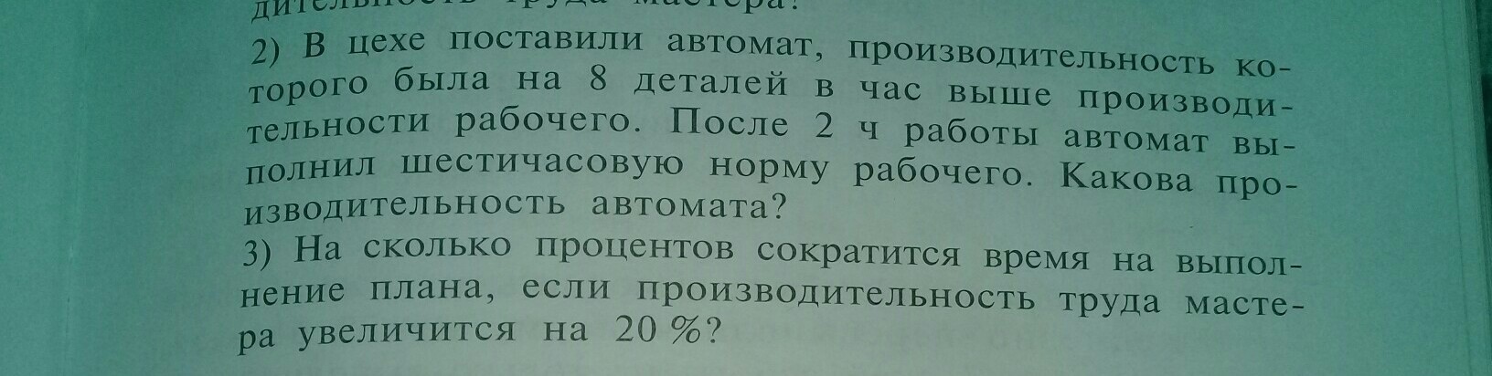 По условию автомат за 2 часа работы сделал столько деталей, сколько сделал рабочий за 6 часов.