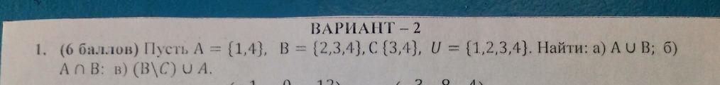 A u B = {1,2,3,4} A n B = {4} BC u A = {1,2,4}
