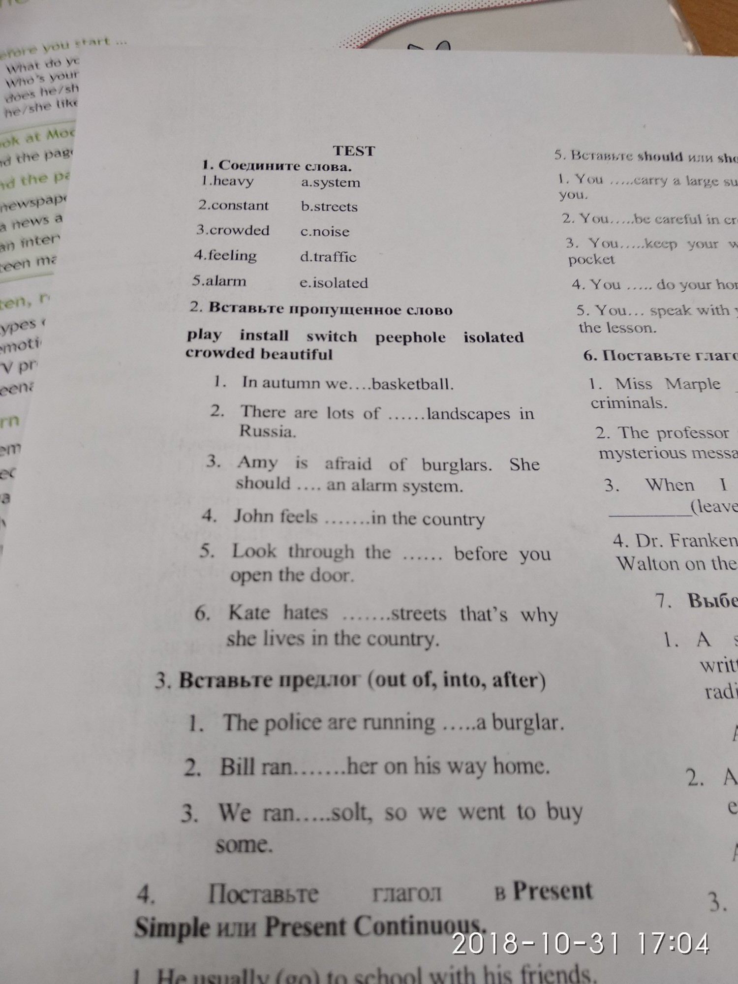 2. 1. Play 2. Beautiful 3. Switch 4. Isolated 5 peephole 6. Crowded