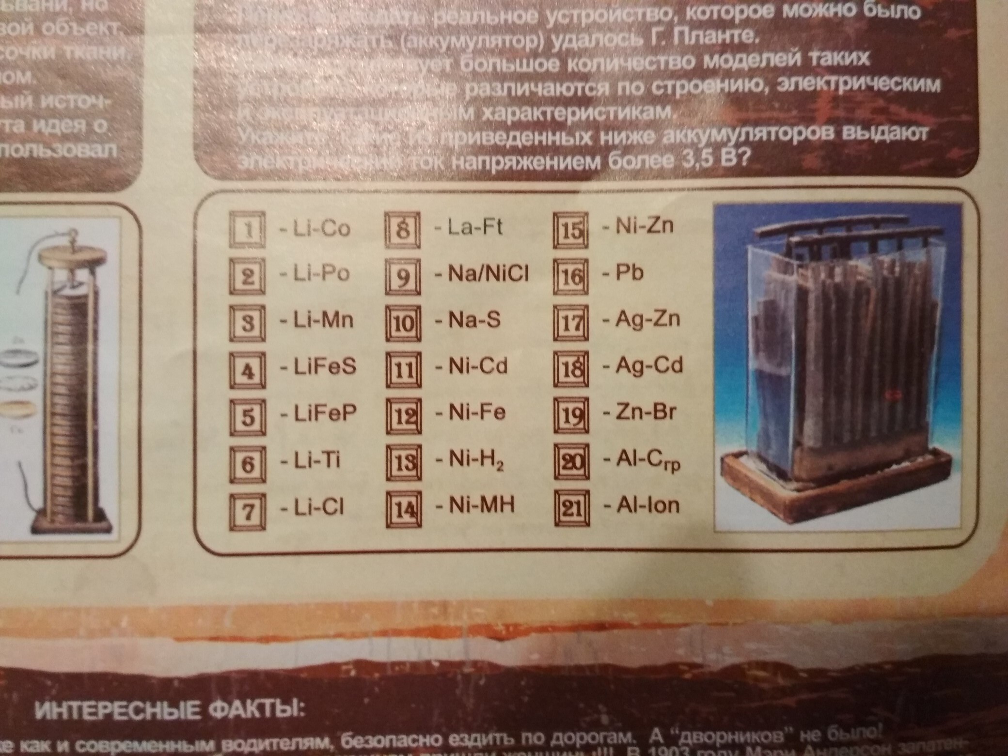 Укажите, какие из перечисленных ниже аккумуляторов выдают электрический ток напряжением более 3,5 В?