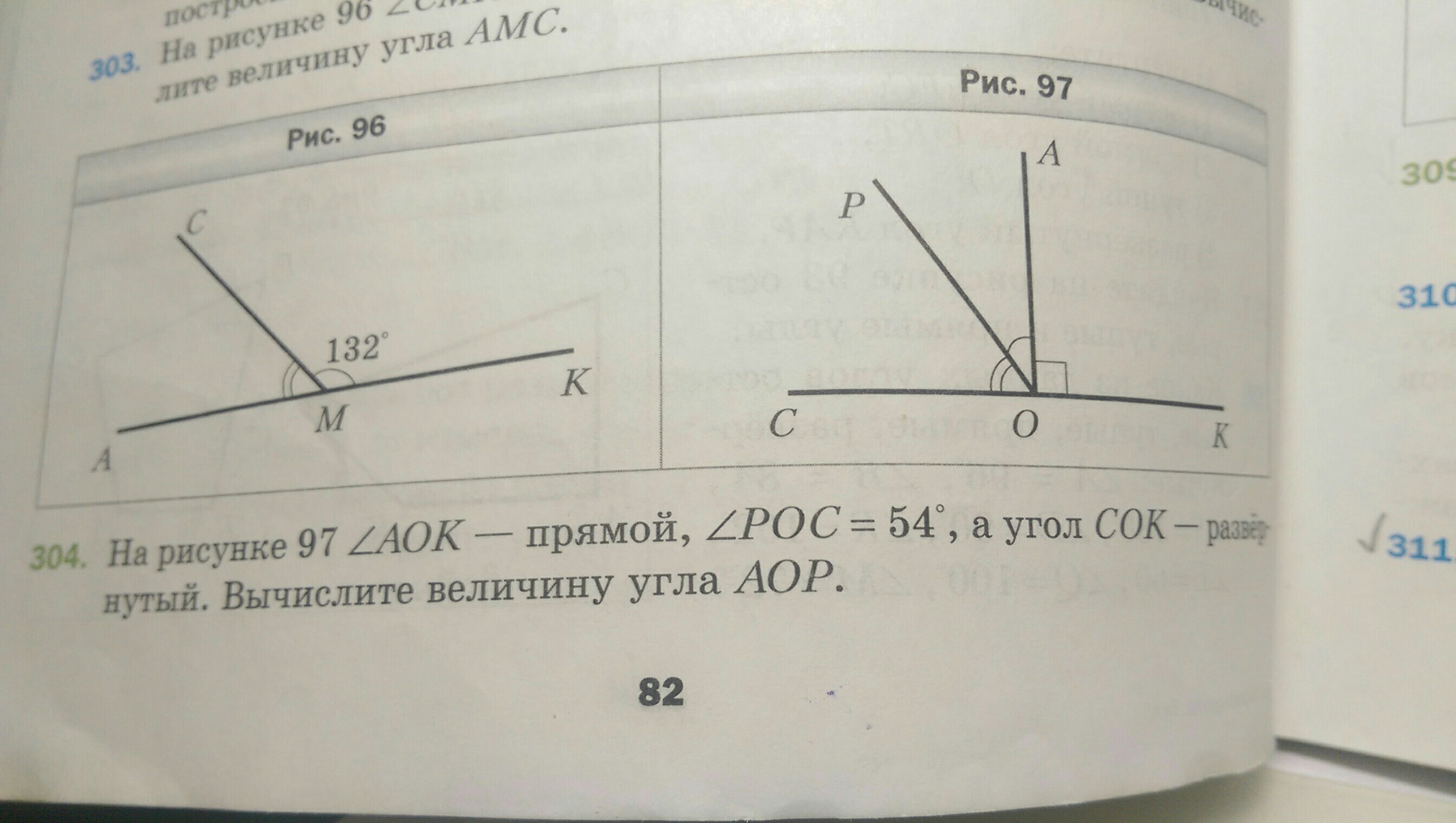 На рисунке 97 AOK-прямой, POC=54°,а угол COK- развёрнутый. Вычеслите. Дано: Найти: Решение: Ответ: