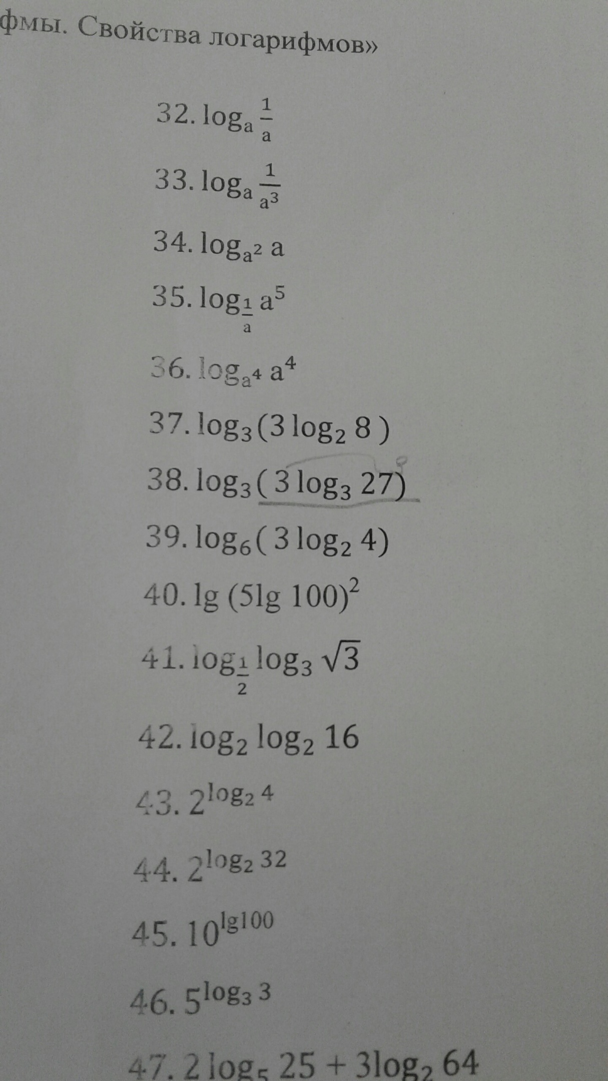 38) log₃(3*3*log₃3)=log₃(3*3)=2;