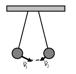 Два шара, висящих на нитях, отклонили от положения равновесия, как показано на рисунке, и отпустили. На каком этапе движения шаров выполняется закон сохранения импульса?