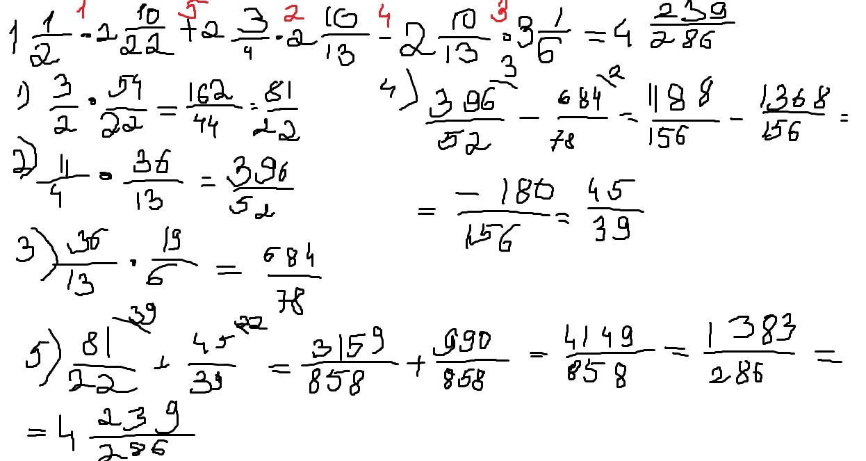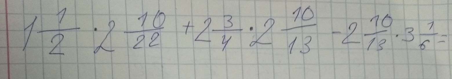 1 * 1/2 * 2 * 10/22 + 2 * 3/4 * 2 * 10/13 - 2 + 10/13 * 3 * 1/6
