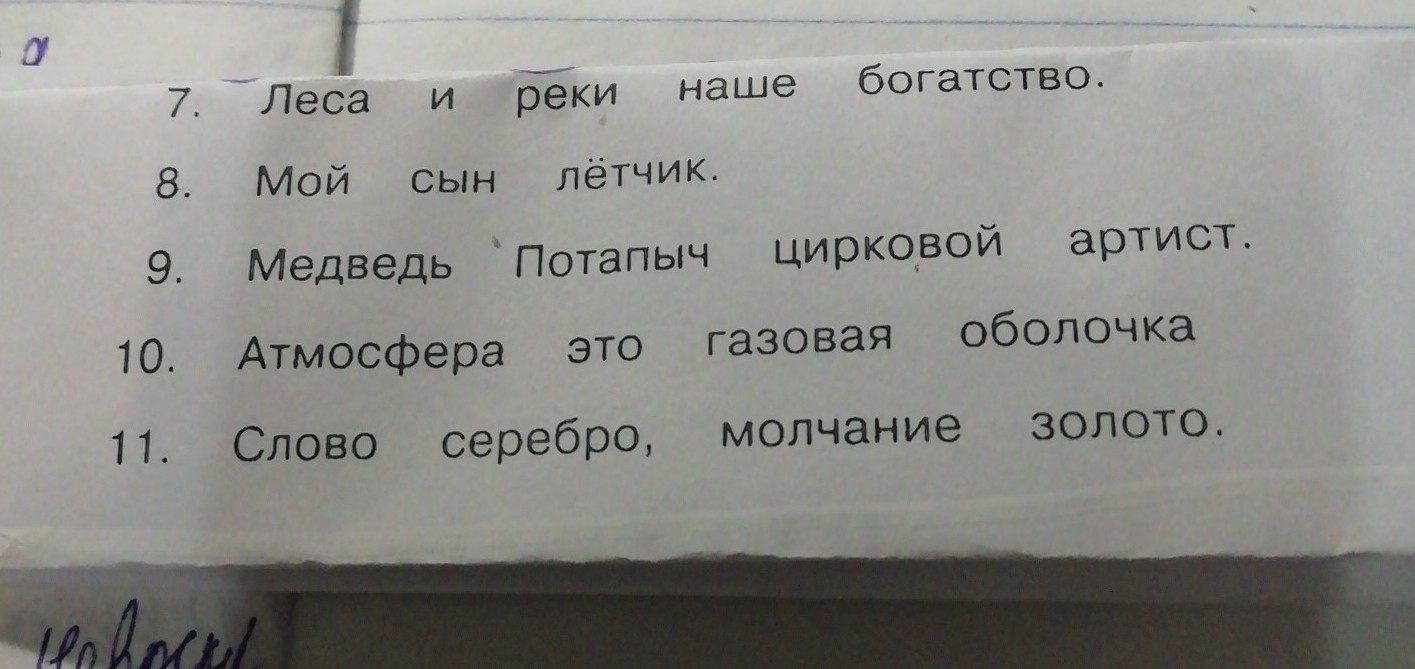 3) Медведь Потапыч - подлежащие