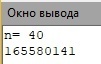 Числа Фибоначчи определяются формулами: f0=1 f1=1 f2=2 fn=f(n-1) + f(n-2) Найти f40