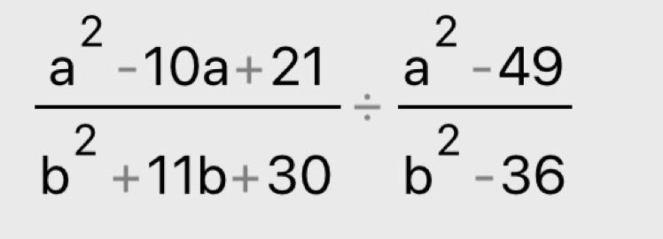 (a-3)(a-7)/(b+6)(b+5) * (b-6)(b+6)/(a-7)(a+7)=(a-3)(b-6)/(b+5)(a+7)