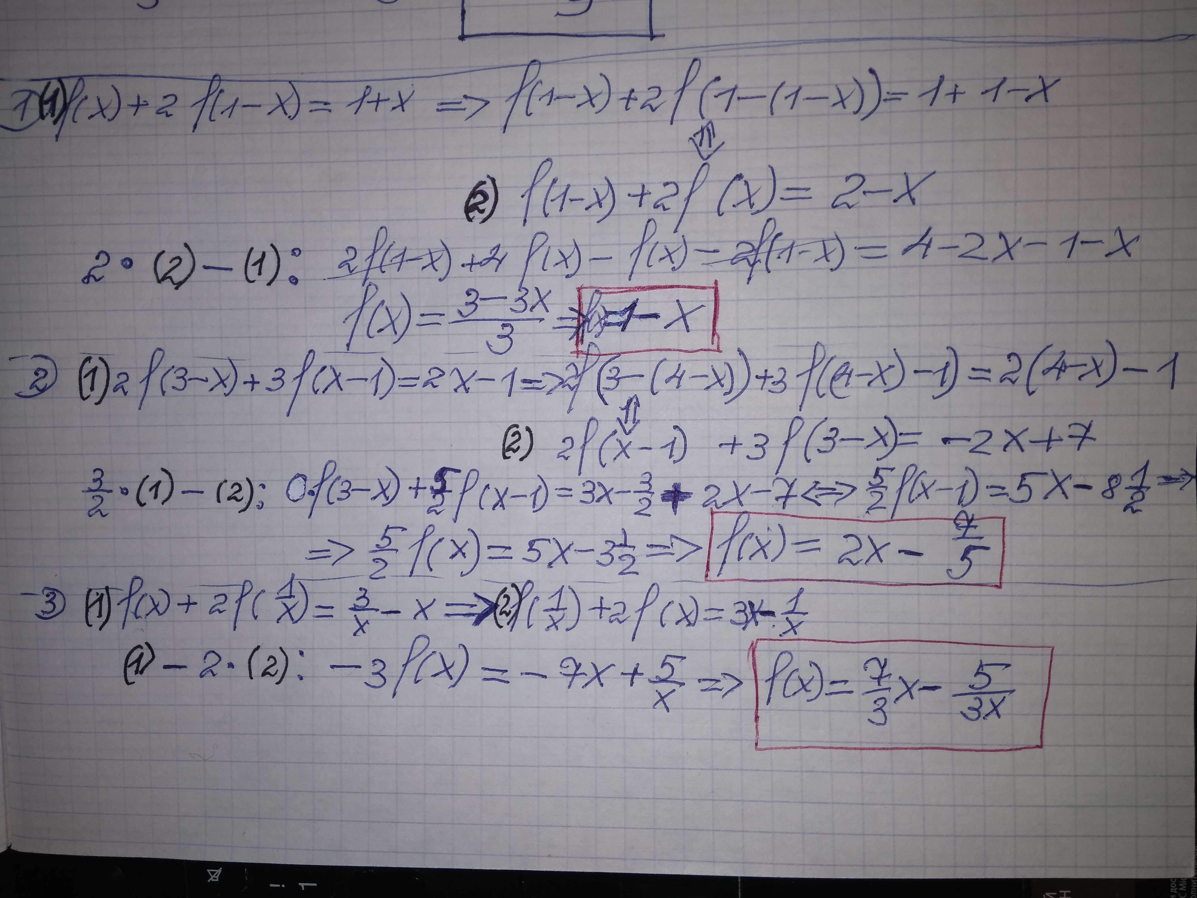 3) f(x)+2f(1/x)=(3-x^2)/x
