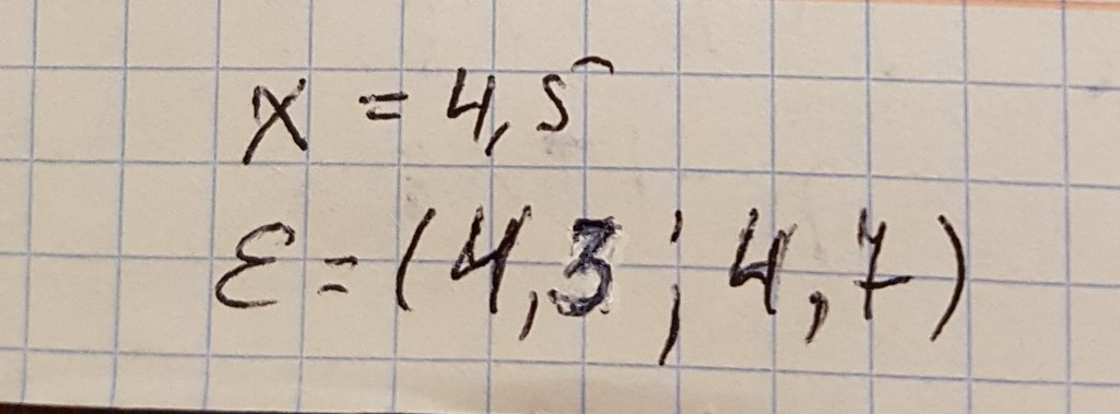 На числовой прямой дана точка x=4,5. Тогда её ε-окрестностью является интервал?