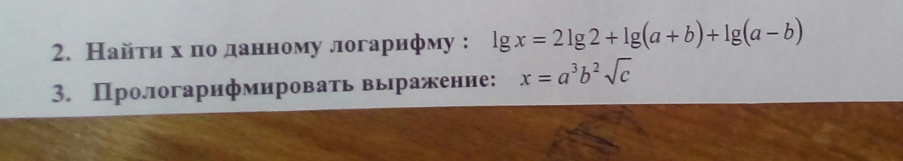 2Lg2+Lg(a+b)+Lg(a-b)=Lg4+Lg(a+b)*(a-b)=Lg4+Lg(a^2-b^2)=Lg4*(a^2-b^2). получаем: Lgx=Lg4*(a^2-b^2), отсюда x=4a^2-4b^2. ^- это степень. я так думаю.
