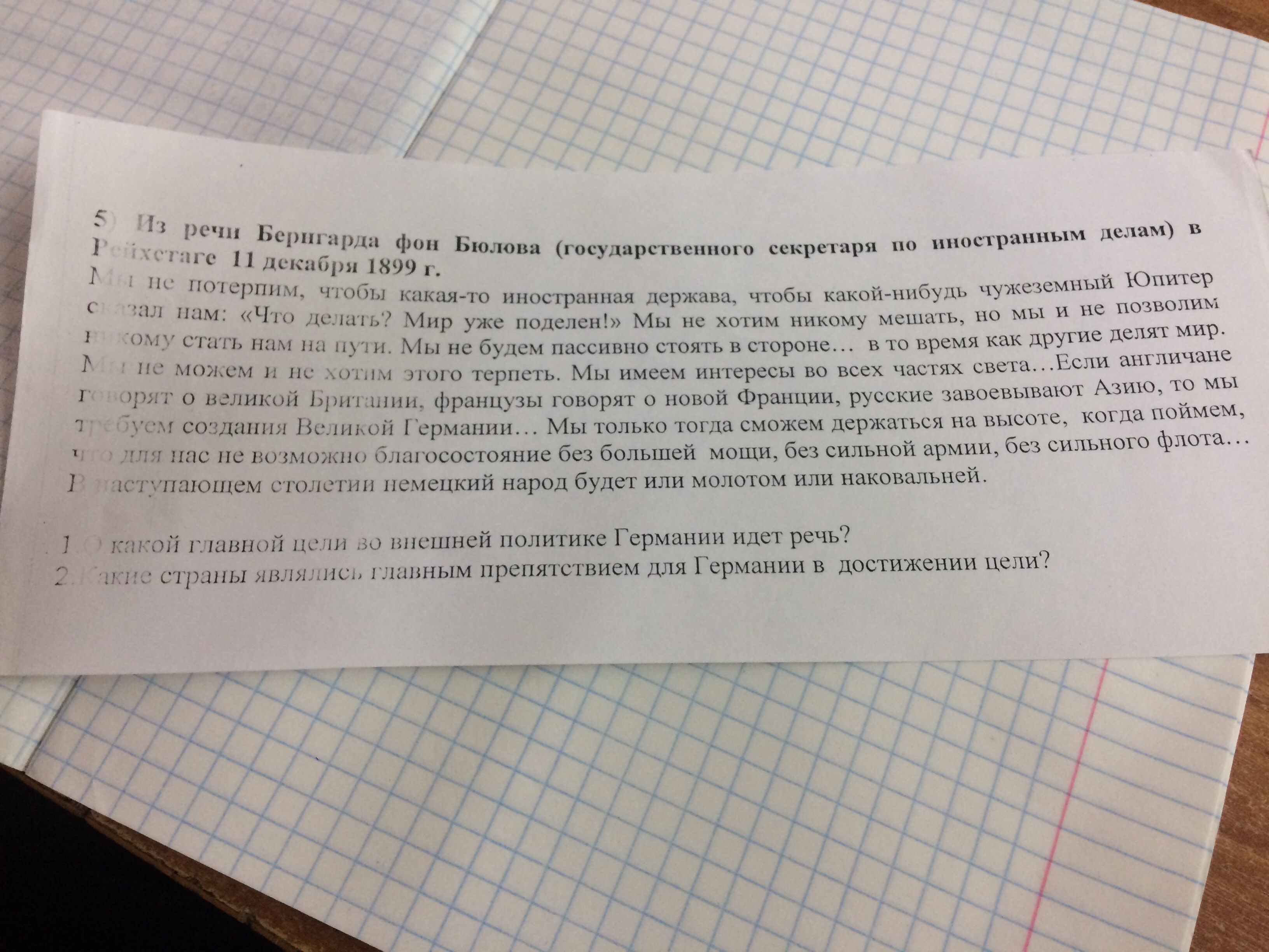 1. Главной целью Германии во внешней политике было расширение и освоение новых колоний.2.Англия, Франция, Россия.