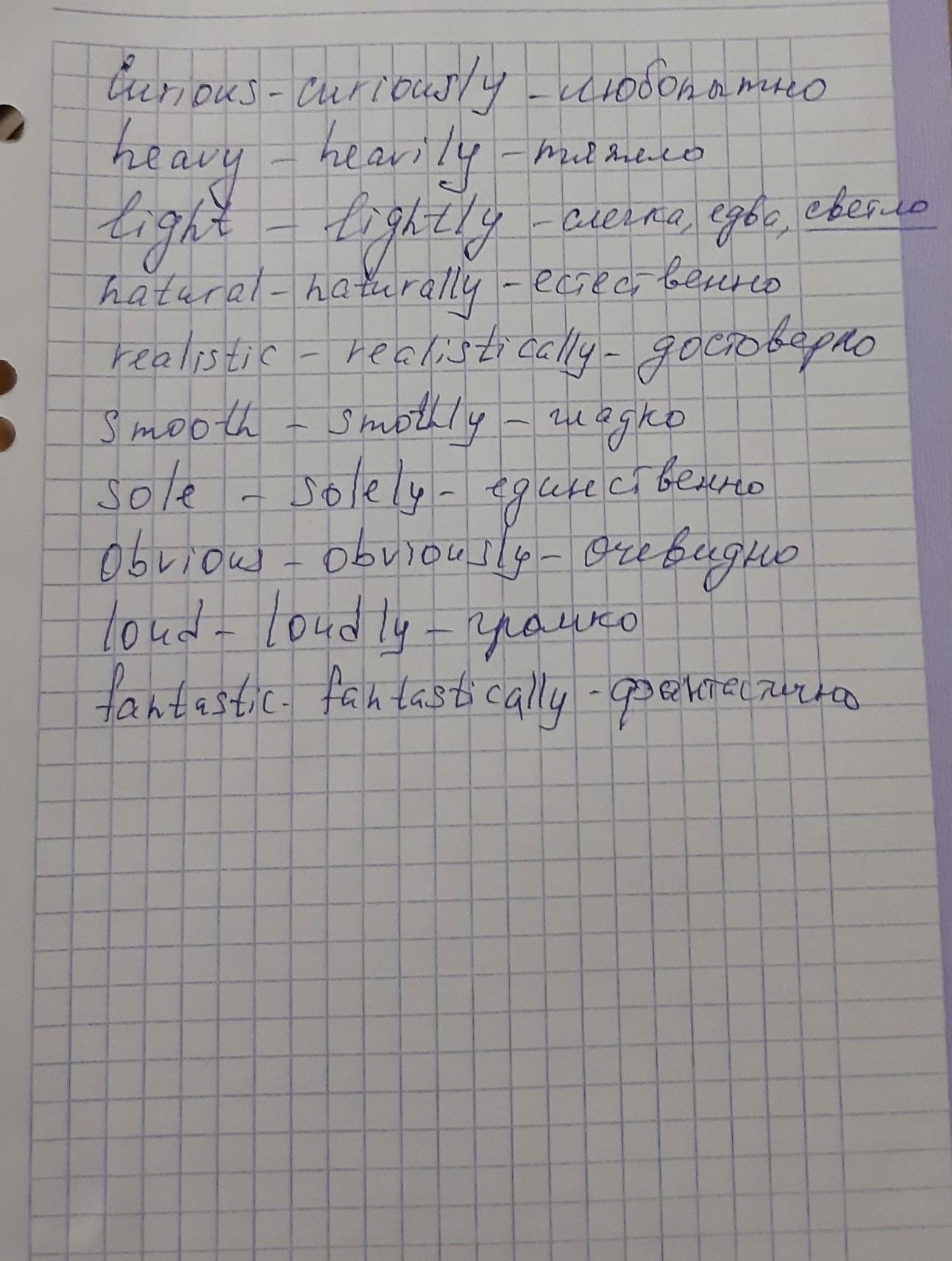 Heavily, lightly, naturally, realistically, smoothly, solely, obviously, loudly, fantastically.