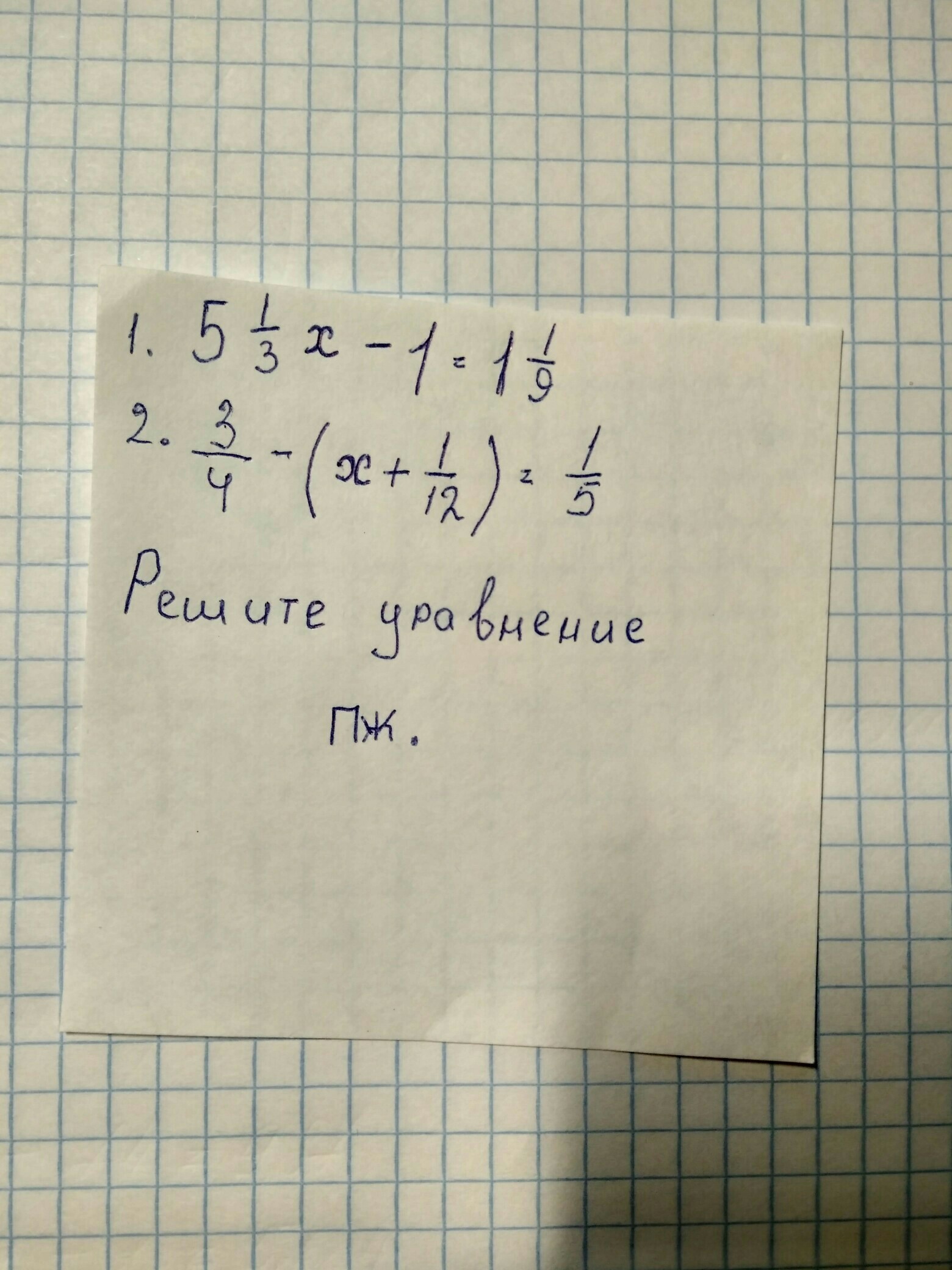 3/4-x-1/12=1/5 5 1/3х=1 1/9+1 -x=1/5-3/4+1/12