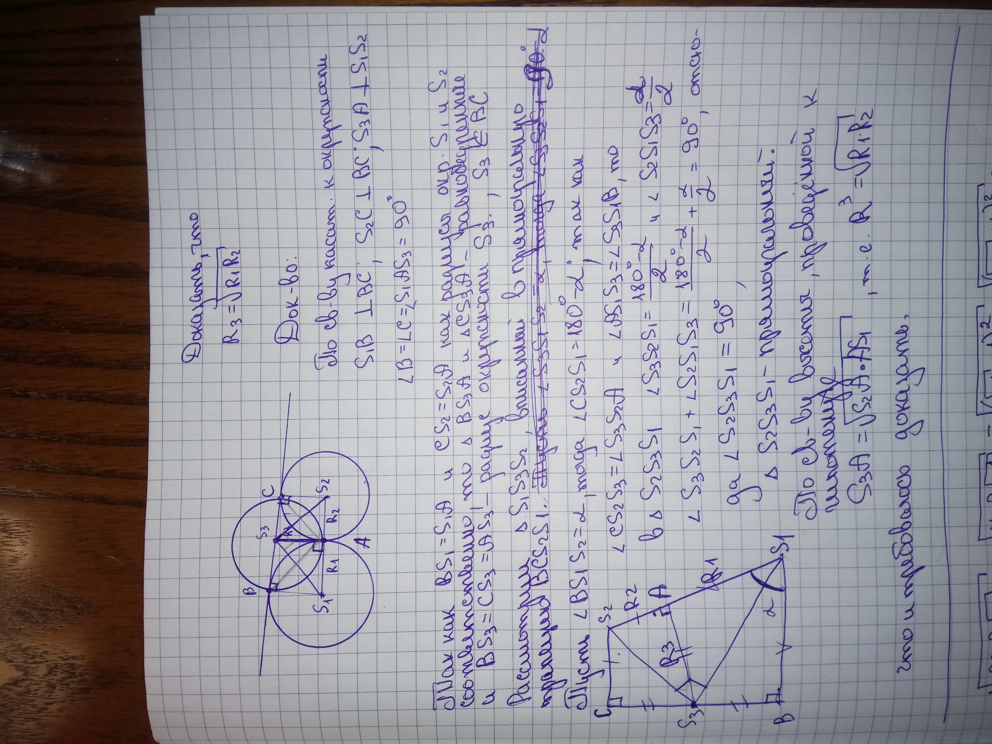 ОКРУЖНОСТИ S1 И S2 С РАДИУСАМИ R1 И R2 ИМЕЮТ ОБЩУЮ ТОЧКУ A. Прямая 1 является касательной и к окружности s1, и к окружности s2, и имеет с ними общие точки B и C соответственно. Доказать, что радиус окружности s3, которая проходит через точки A, B и C равняется √(r1r2) Пожалуйста.