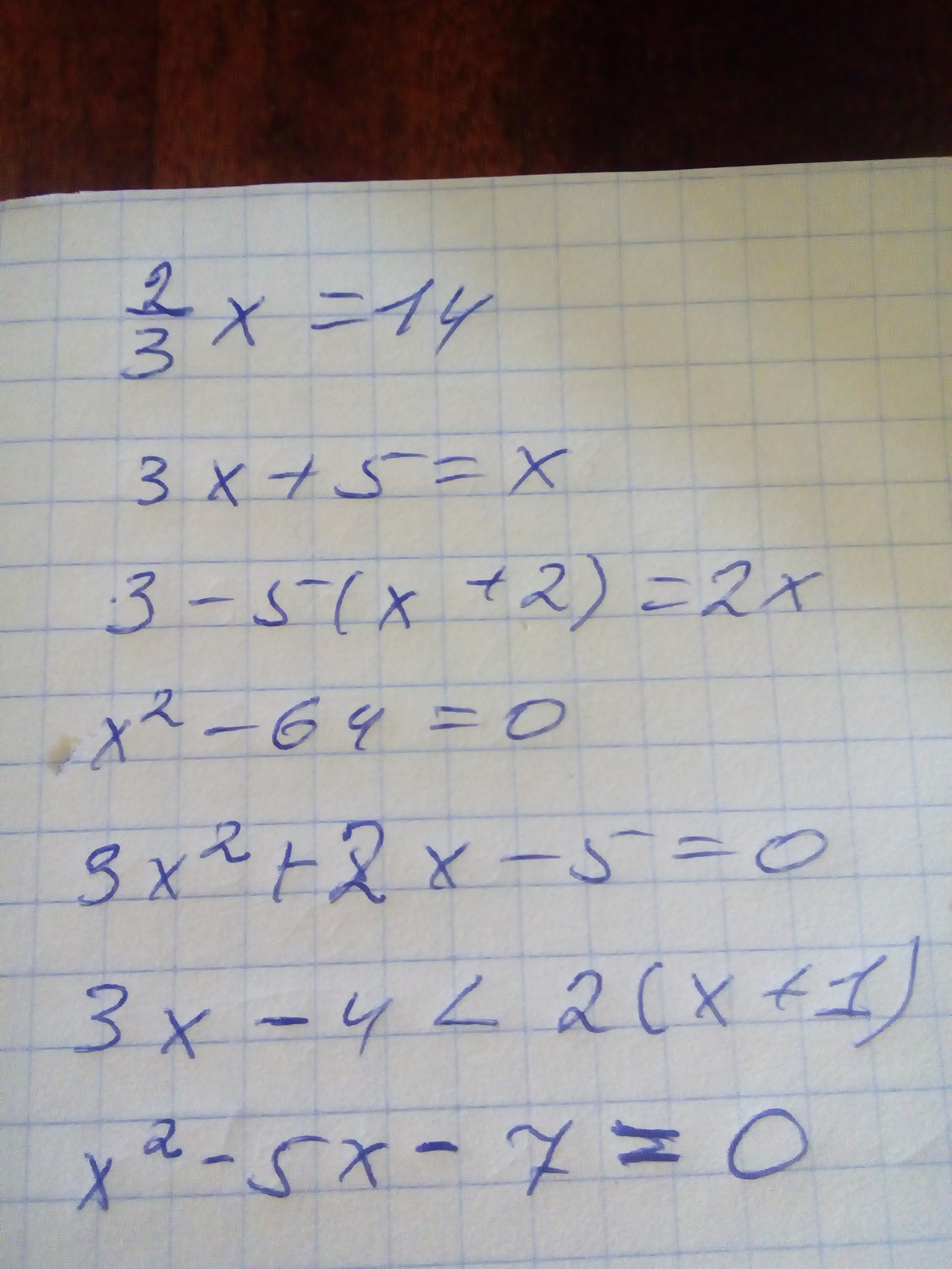 5) 3x^2+2x-5=0