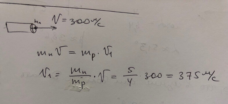 Чему равна скорость отдачи ружья массой 4 кг при вылете из него пули массой 5кг со скорости 300м/с