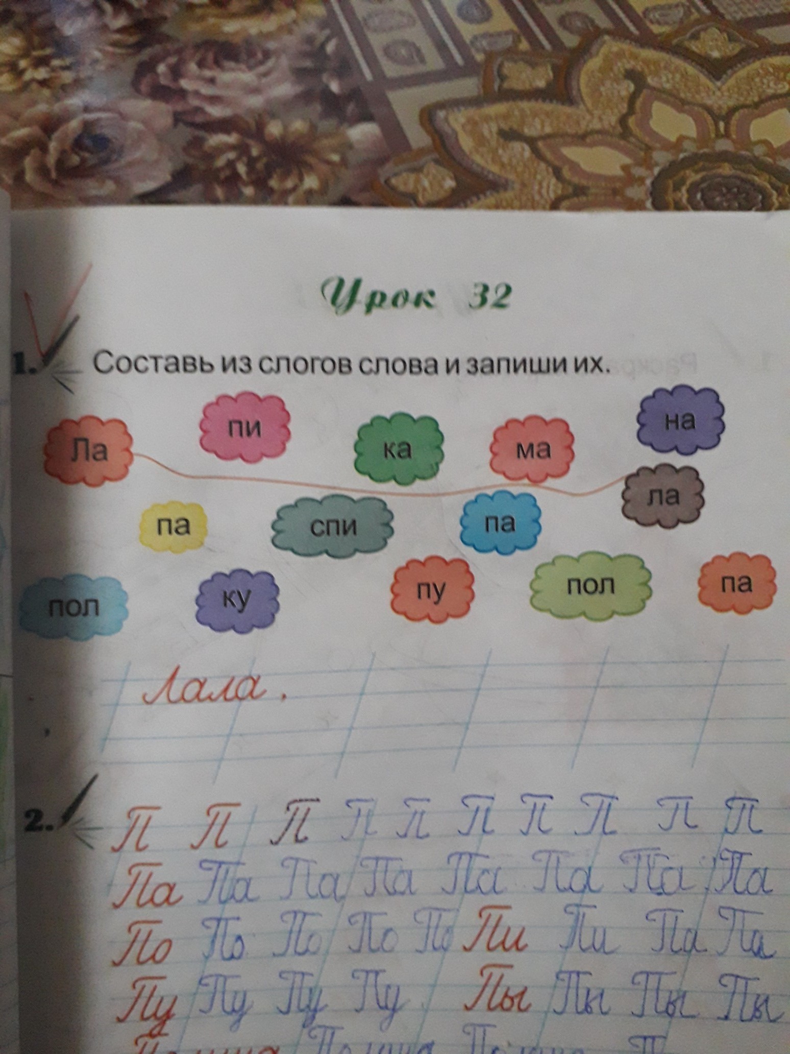 Кума, полка, папа, спина, лама, лапа.