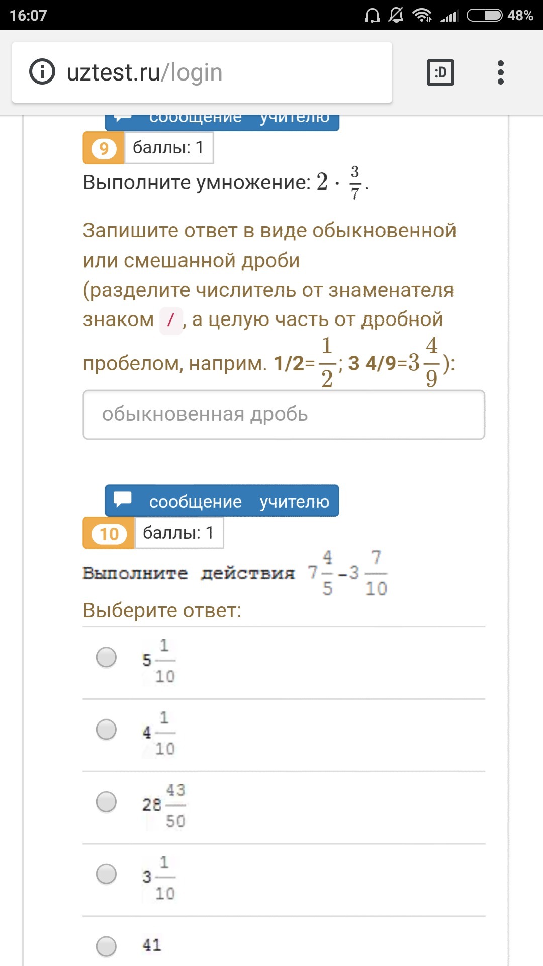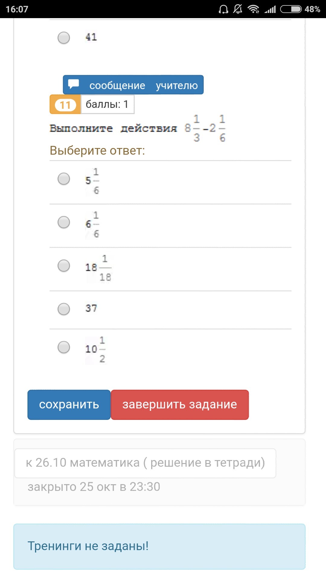 10) 8 2/6 - 2 1/6 = 6 1/6