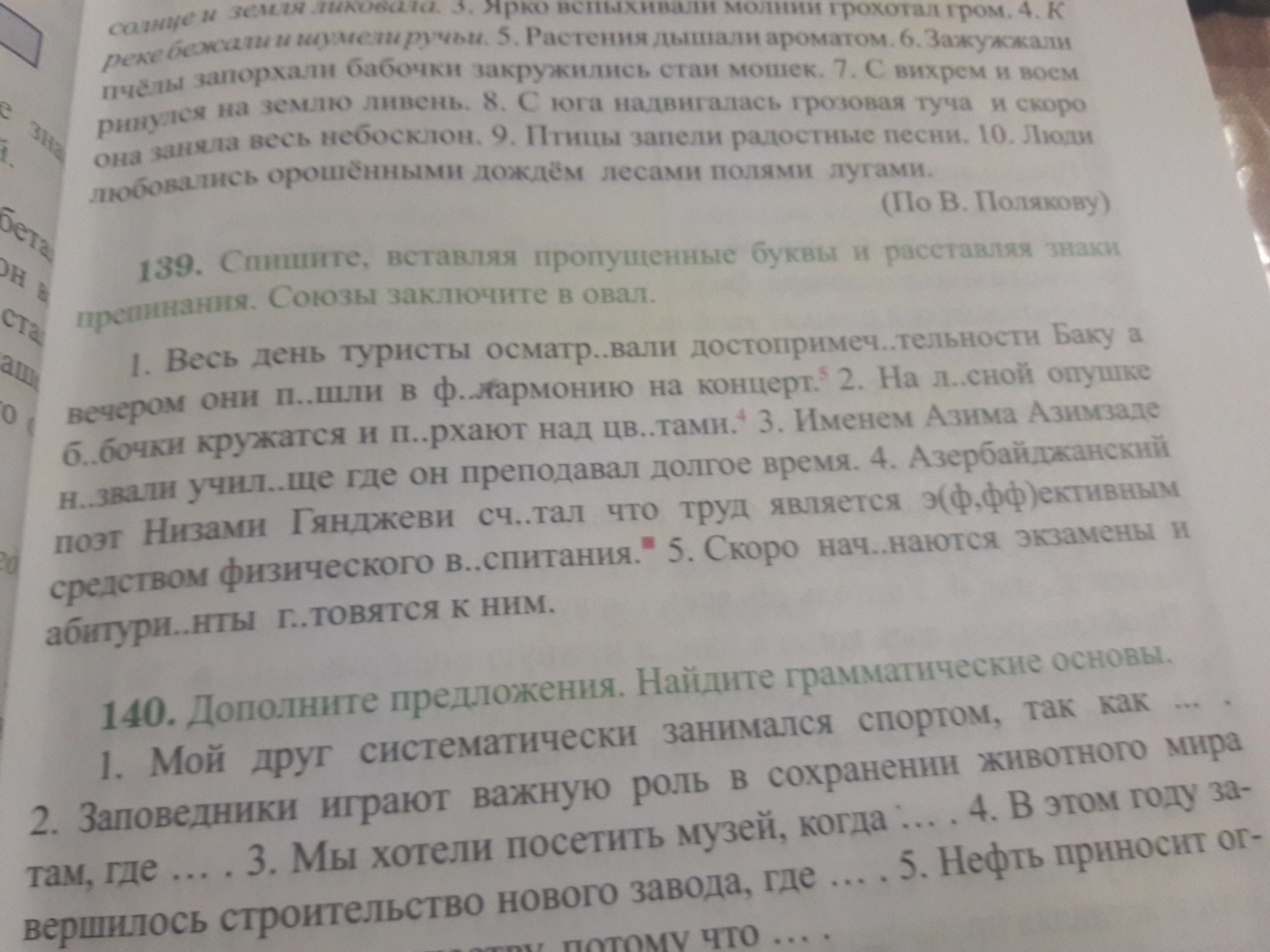 1.Весь день туристы осматривали достопримечательности Баку, а⊕ вечером они пошли в филармонию на концерт.