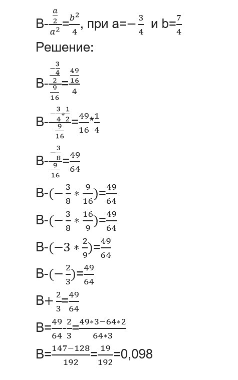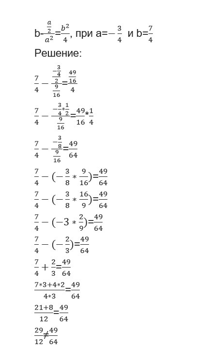 2) b-(a/2)/a^2 =b^2/4, при a=-3/4 и b=7/4