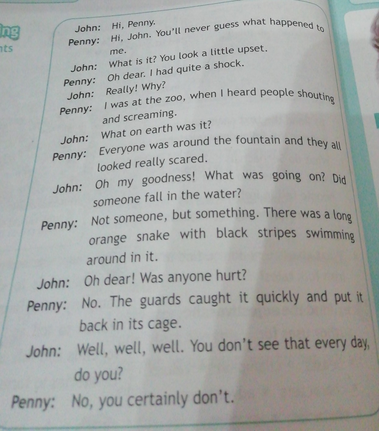 Нужно диалог между персонажами на английском о каком-то происшествии!