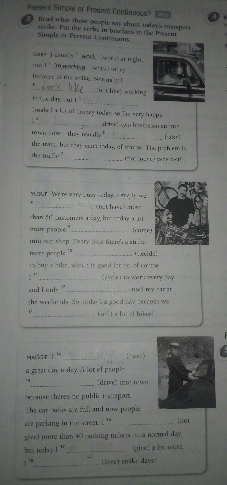 8. don't have. 9. coming 10.decide. 11. am cycling. 12uses 13selling