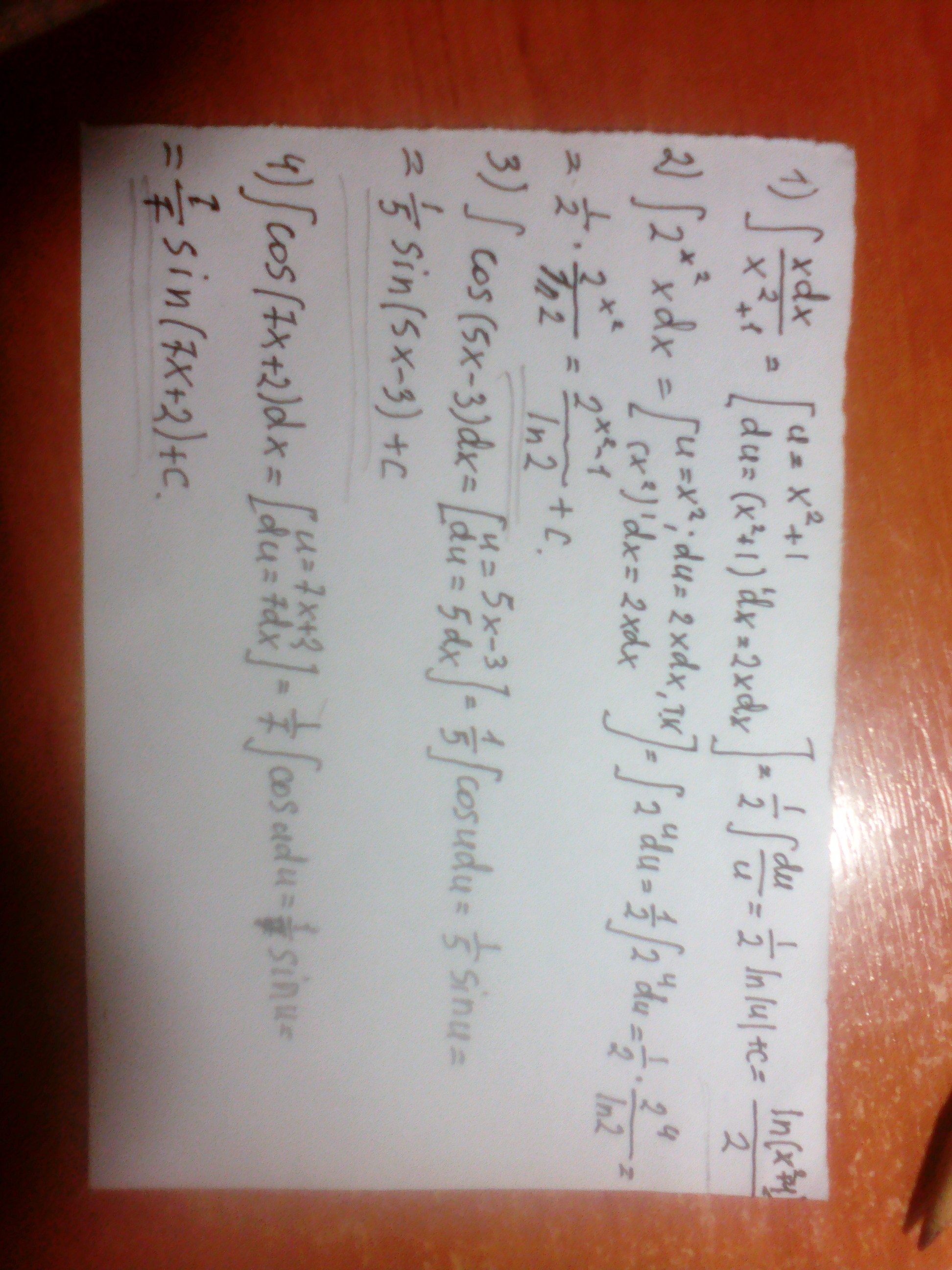 Вычислить неопределенные интегралы методом подстановки