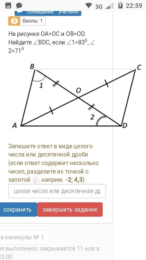 Если 1=AOB=83° 2=AOD=71°