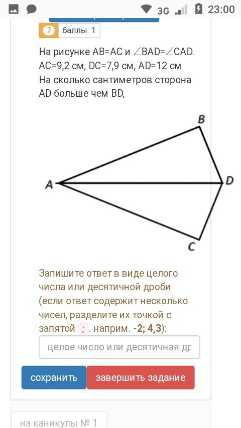 Значит: AD-BD=AD-DC=12-7,9=4.1СМ