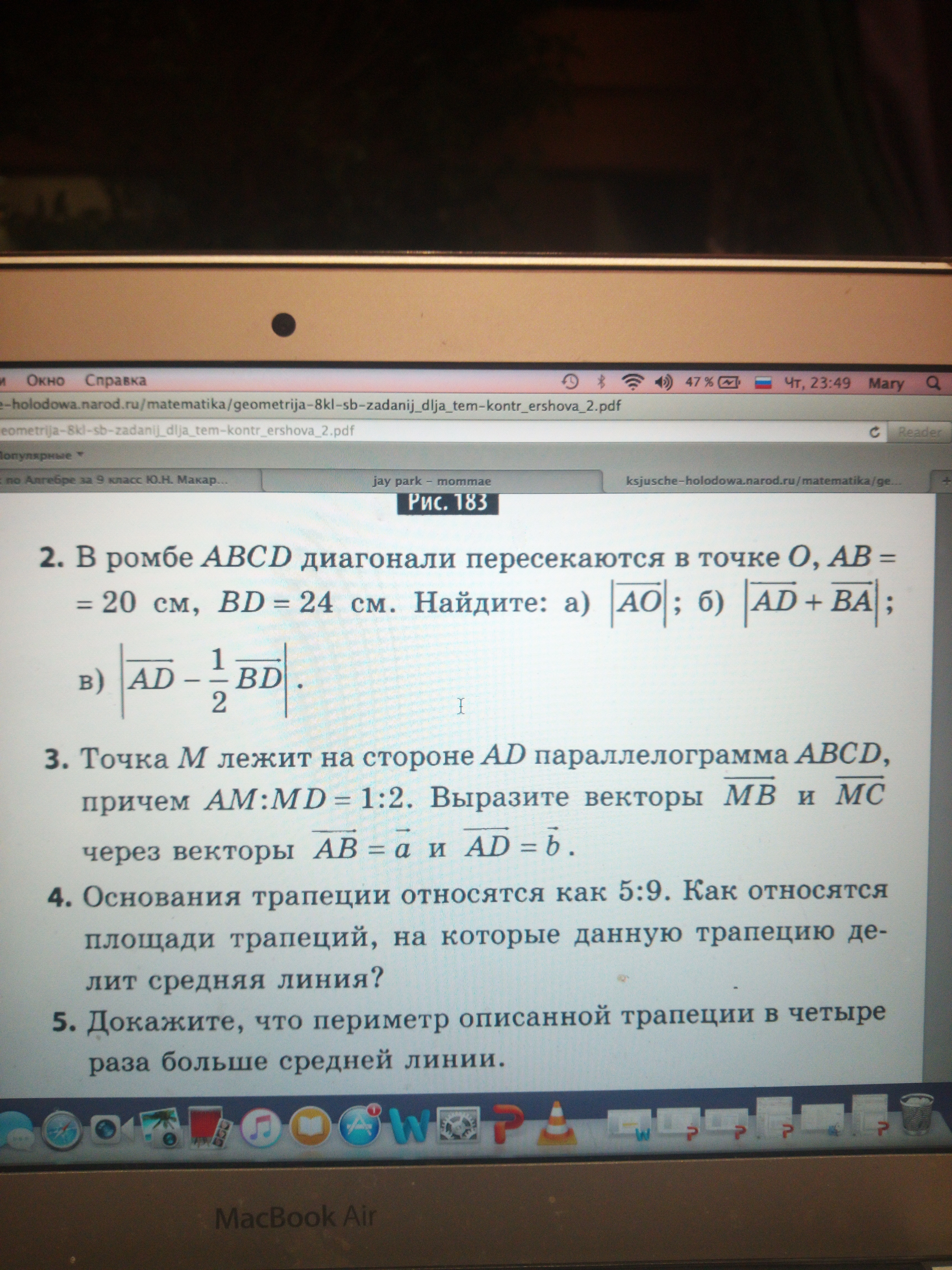 ΔАВО: ∠АОВ = 90°, АВ = 20 см, BO = BD/2 = 12 см, по теореме Пифагора