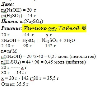 Сколько грамм сульфата натрия можно получить при взаимодействии24 грамм гидрооксид натрия с 44 граммами серной кислоты