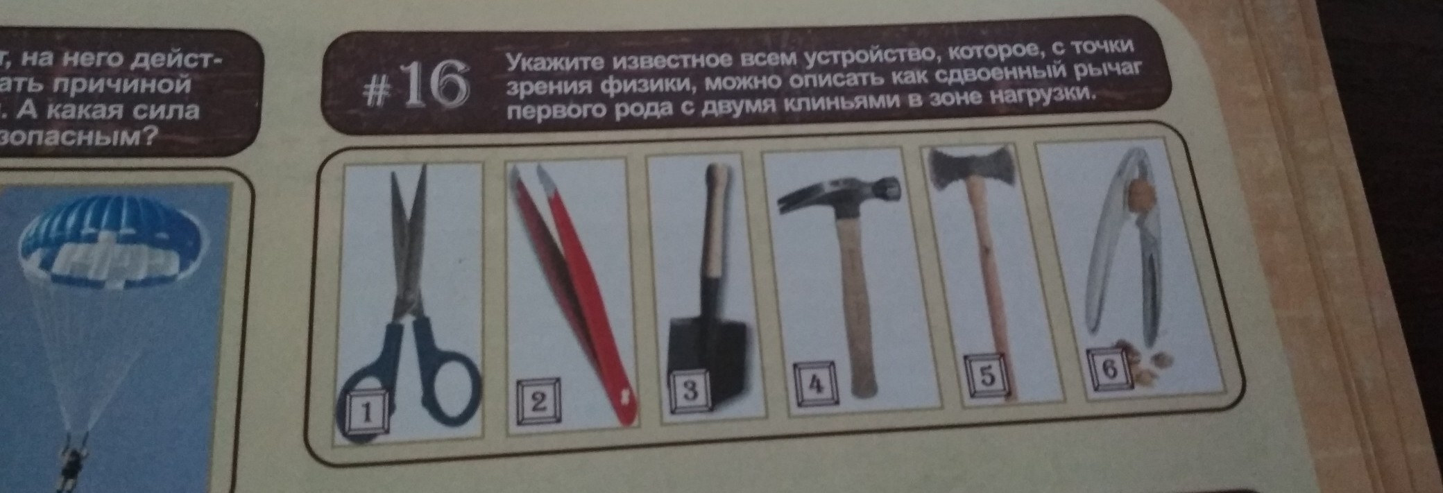 Укажите известное всем устройство,которое с точки зрения физики можно описать как сдвоенный рычаг первого рода с двумя клиньями в зоне нагрузки?Очень срочно пожалуйста.