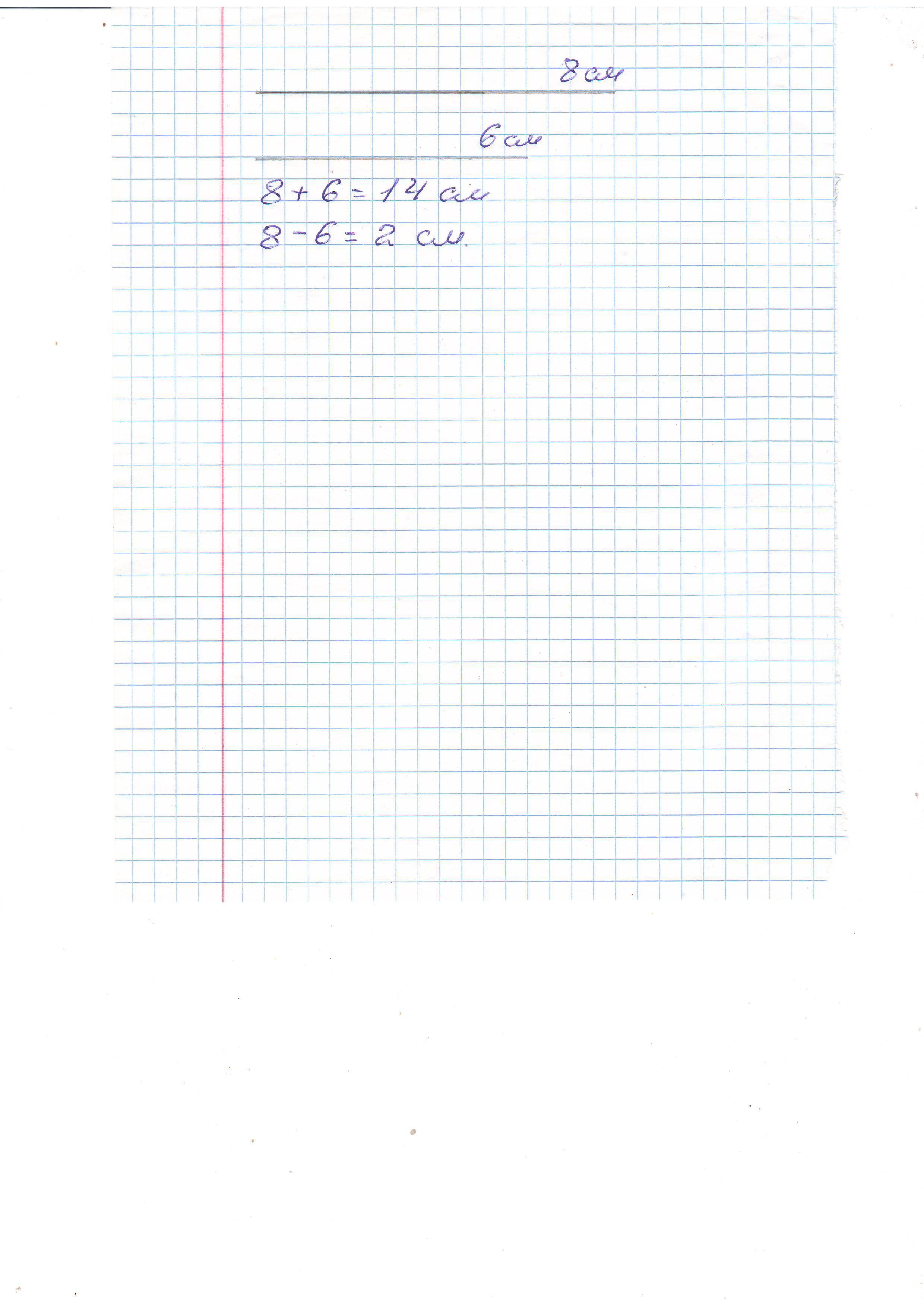 Начерти два отрезка так, чтобы один был длиннее другого на 2 см, а вместе они составили отрезок длиной 14 см.