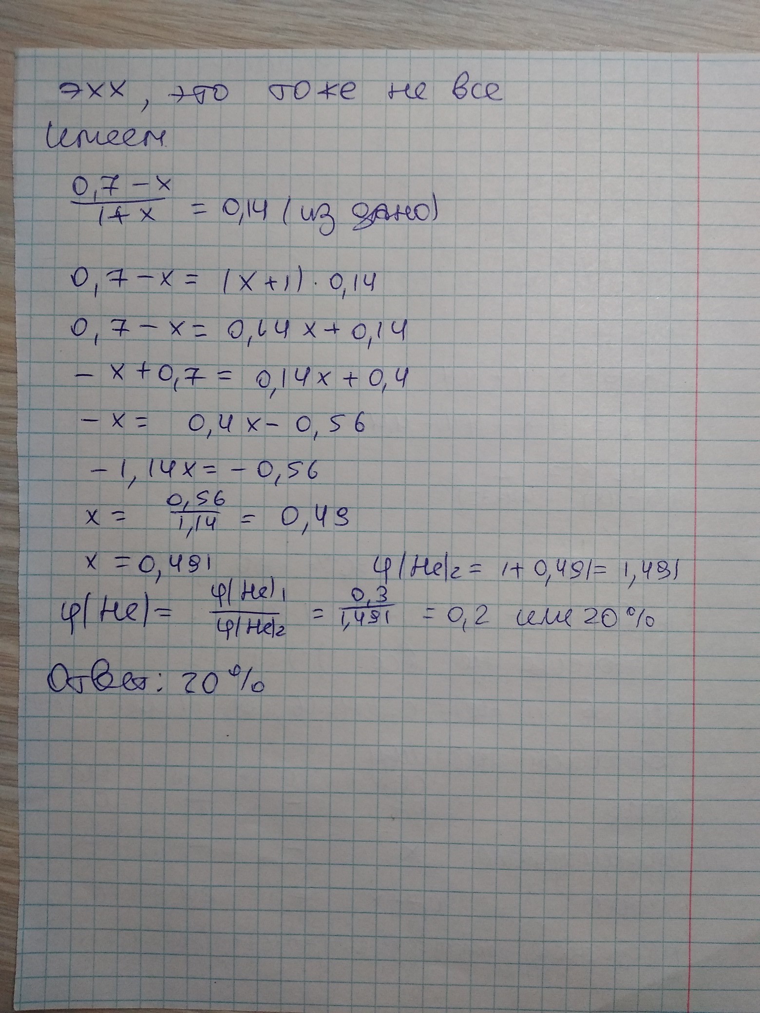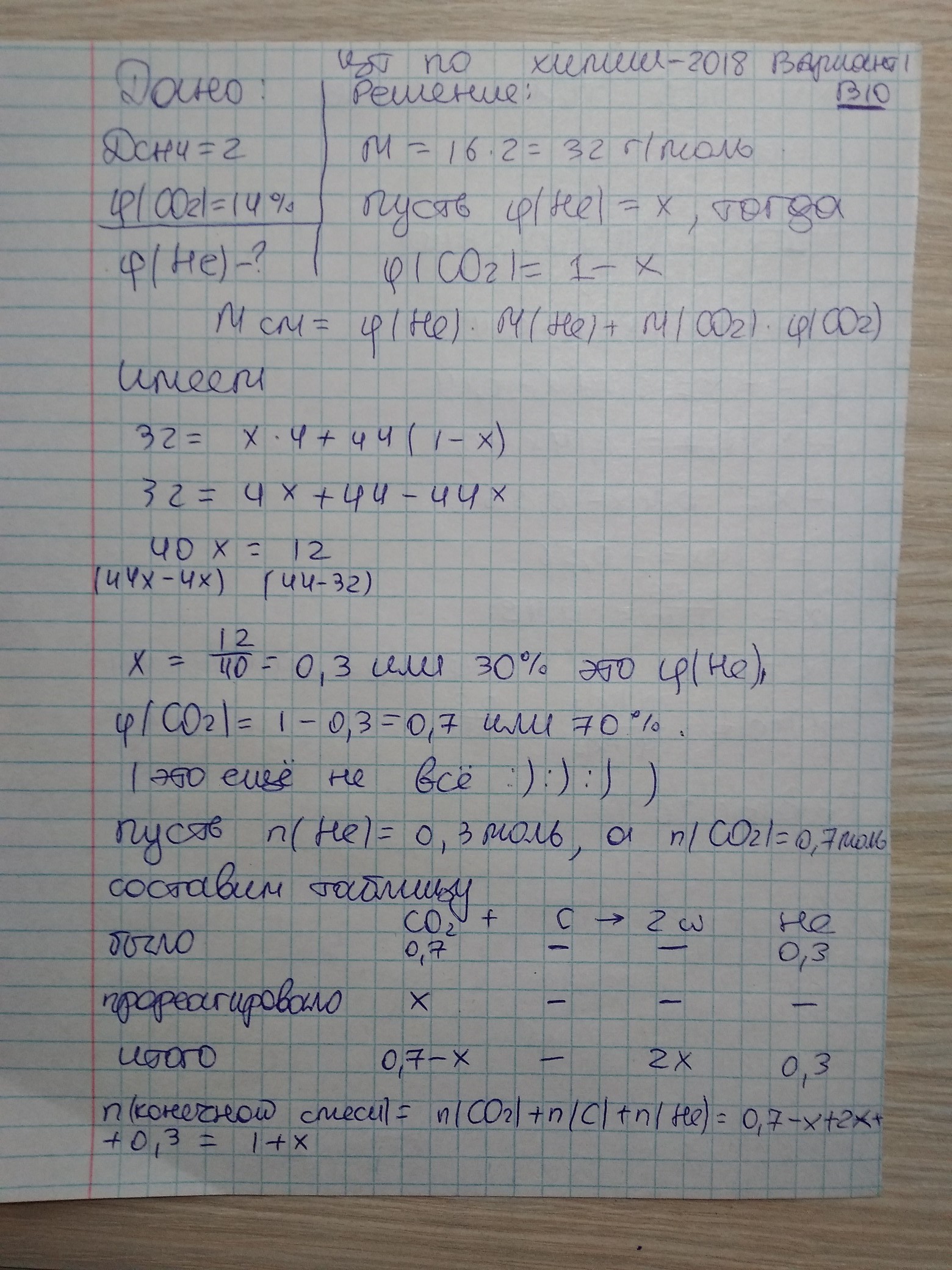 Относительная плотность газовой смеси, состоящей из углекислого газа и гелия, по метану равна 2. После пропускания смеси над раскаленным углем объемная доля углекислого газа составила 14%. Вычислить объёмную долю гелия в конечной смеси.