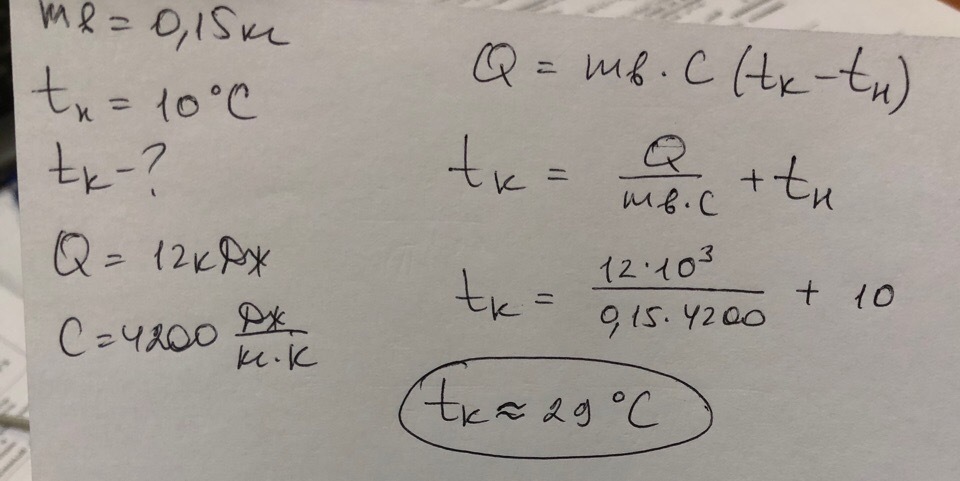воде массе 150г взятой при температуре 10с ,сообщили количество теплоты равное 12кДж Чему стала равна температура воды