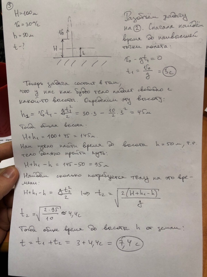 3)Тело бросают вертикально вверх с высоты 100 м со скоростью 30 м/с. Через какой промежуток времени тело будет находиться на высоте 50 метров от земли?