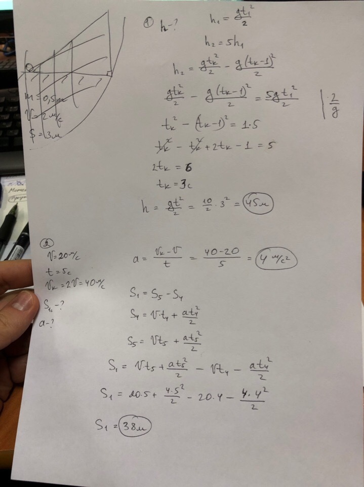1)с какой высоты падало тело без начальной скорости, если путь, пройденный им за последнюю секунду движения, в пять раз больше пути за первую секунду?