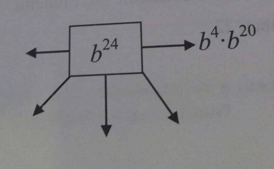 При умножении показатели степеней складываются. Вам показано, что в сумма должна быть равна 24, в прямоугольнике стоит b24...