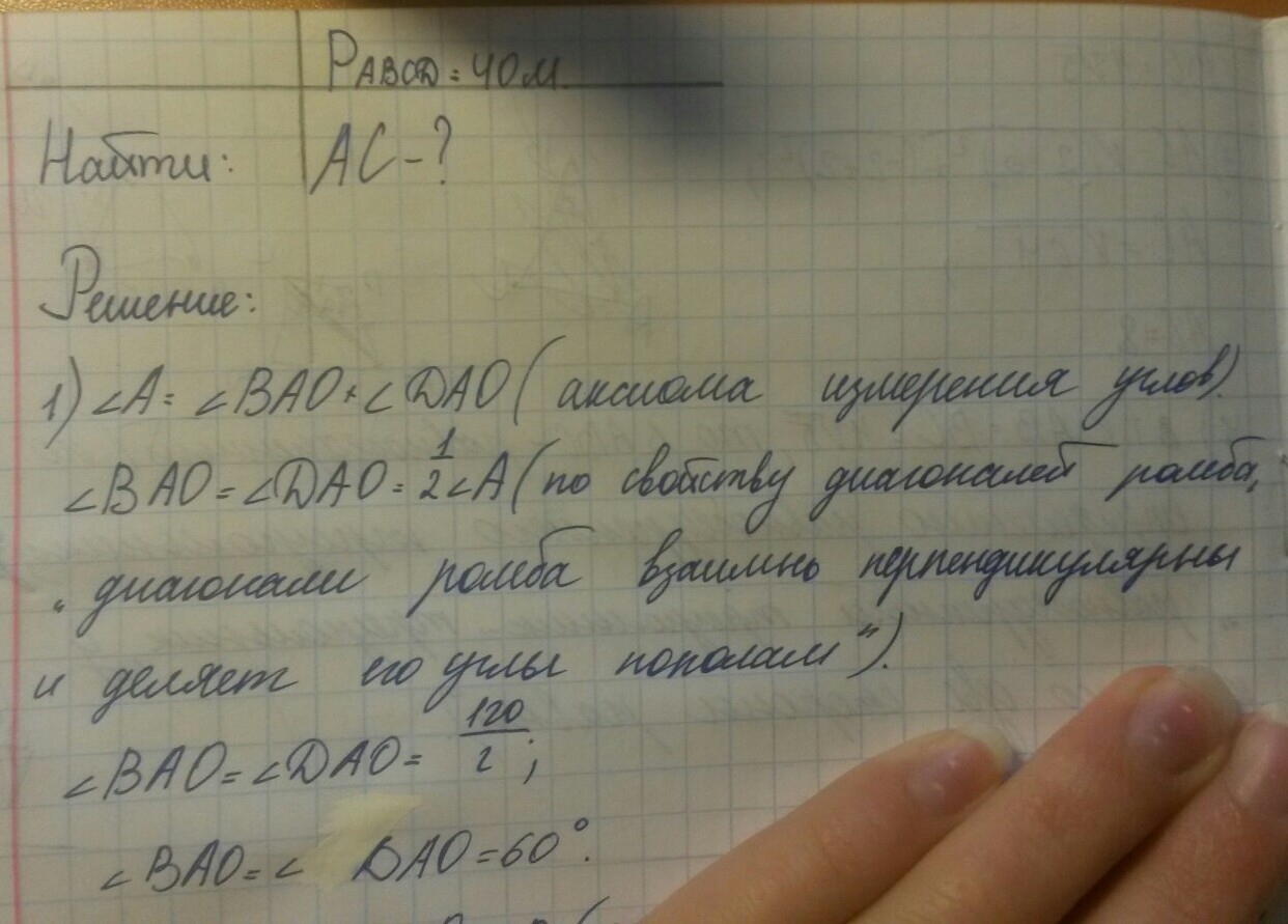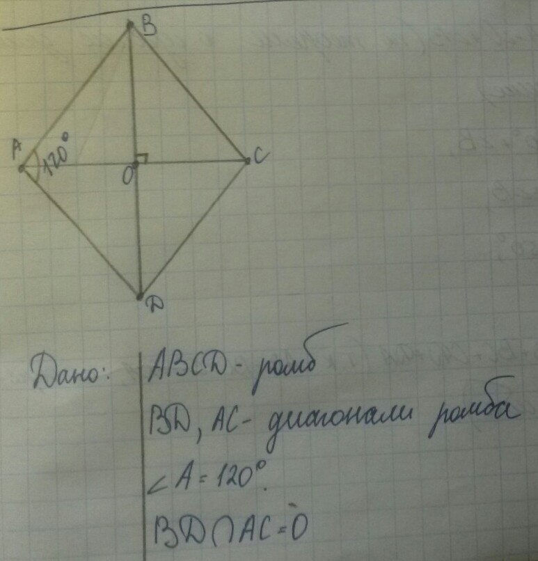 Тупой урон ромба 120градусов периметр равен 40м. Вычисли меньшую диагональ ромба .