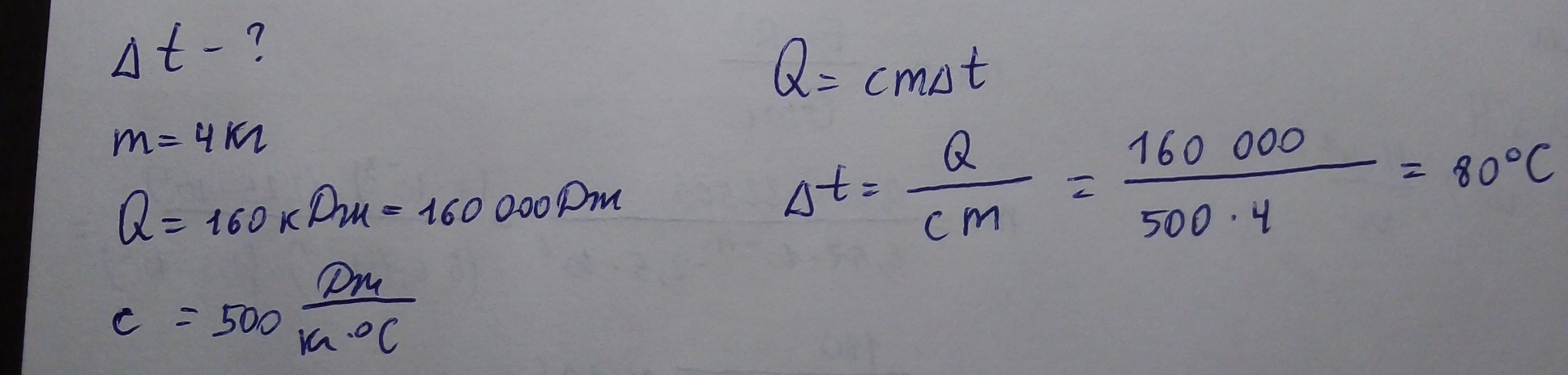 На сколько измениться температура стального бруска массой 4 кг при передаче ему 160 кДж количества теплоты ? ДАЮ 34 БАЛЛА!!!!!