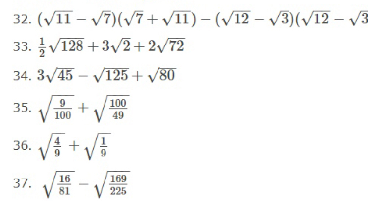 32.(√11-√7)(√7+√11)-(√12-√3)(√12-√3)=(√11-√7)(√11+√7)-(√12-√3)(√12-√3)=(√11²-√7²)-(√12²-√36-√36+√3²)=(11-5)-(12-√36-√36+3)=6-12+√36+√36-3=-21+12=-9