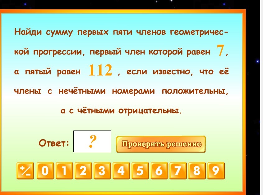 Из условия следует, что знаменатель прогрессии меньше нуля, значит, q = -2