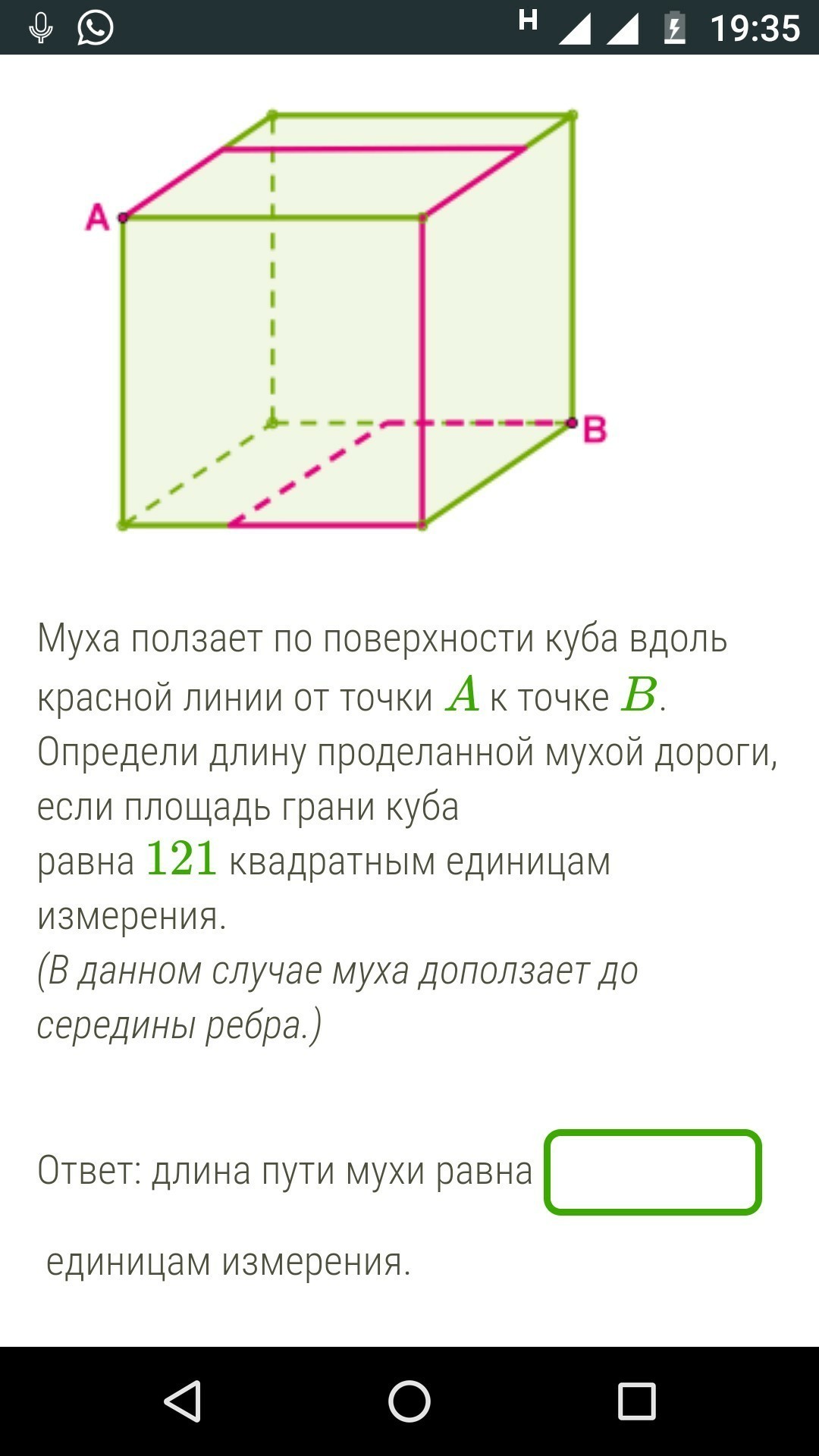 Для того, чтобы найти площадь грани куба, требуется перемножить между собой пару любых из его сторон, ведь все они между собой равны. Формулой это можно выразить так: S = a², где а - сторона квадрата (площадь куба 121 в квадрате а 121 в квадрате это 11)