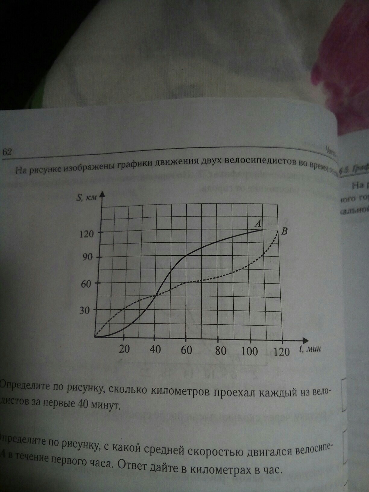 определите по рисунку, сколько км проехал каждый из велосипедистов за первые 40 минут.