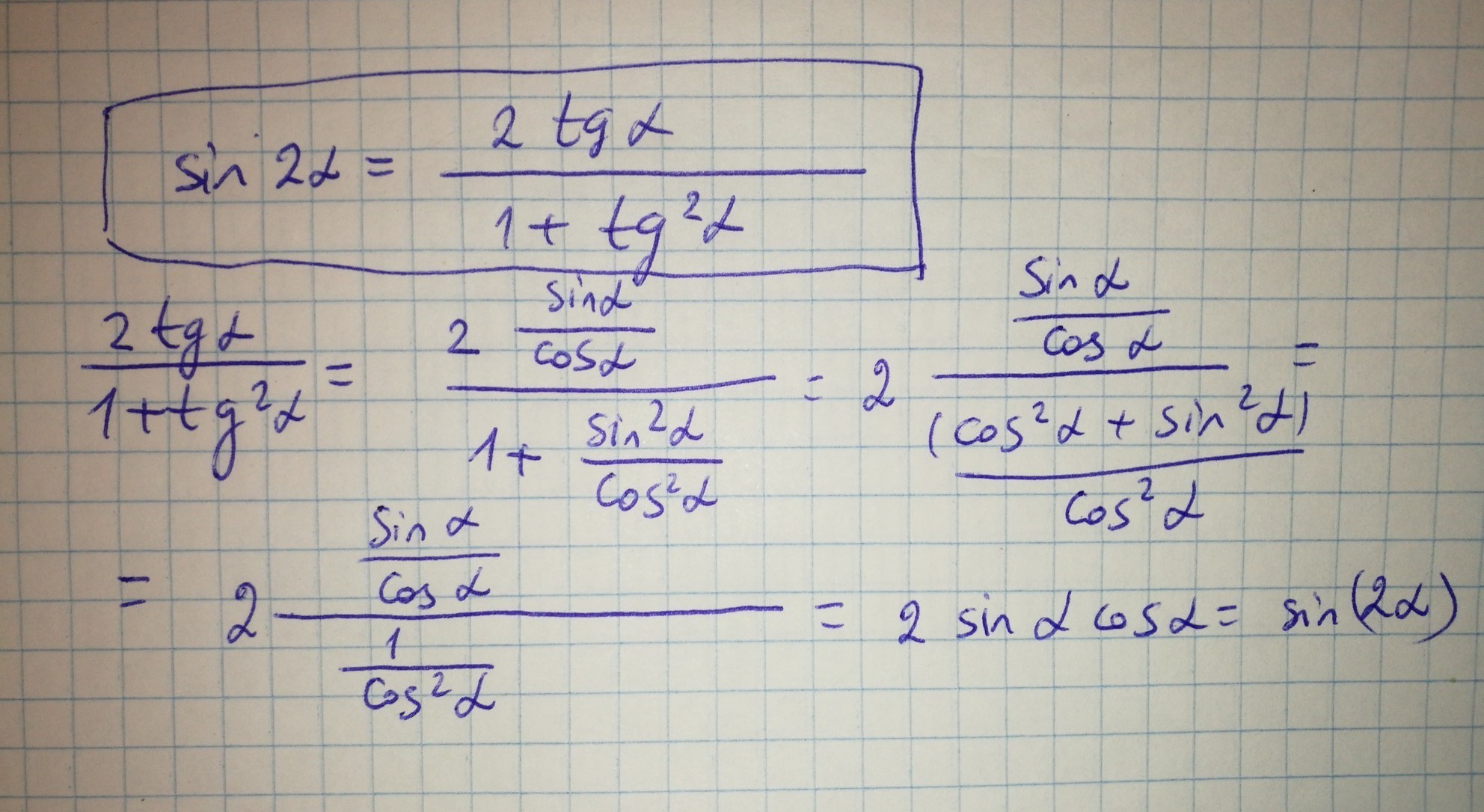 Я думаю автор вопроса имел в виду, как получить из sin2a то выражение. А вы просто доказали равенство...