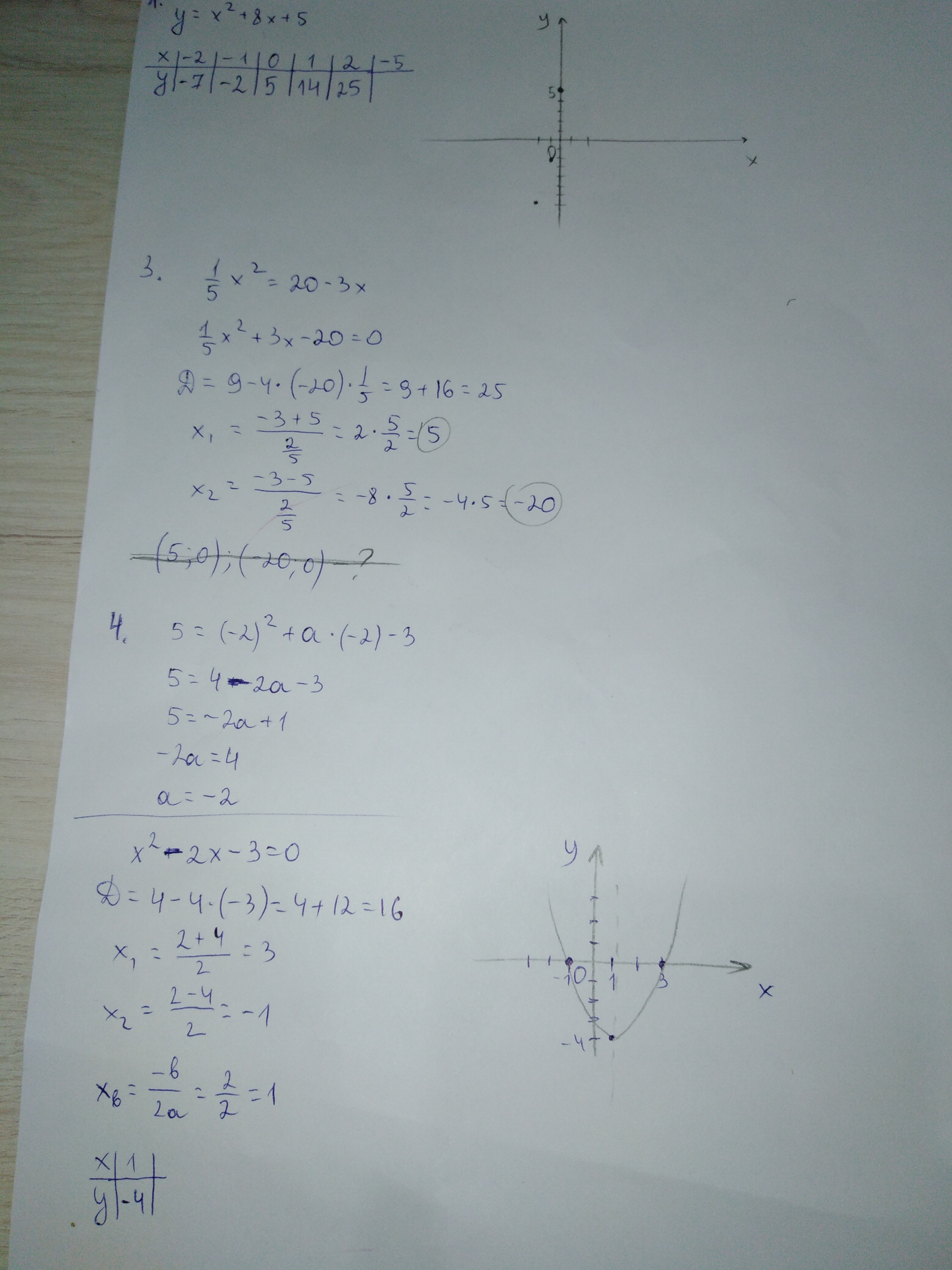 В 3 номере нужно найти координаты пересечения. Координаты - это икс и игрек. Икс (в данном случая два икса, ибо точек пересечения там две) я нашла, игреки не помню как, сам(а) подставишь.