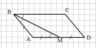 Сторона АВ параллелограмма АВСD вдвое меньше стороны ВС. Точка М середина стороны АD. Докажите, что ВМ биссектриса угла АВС.
