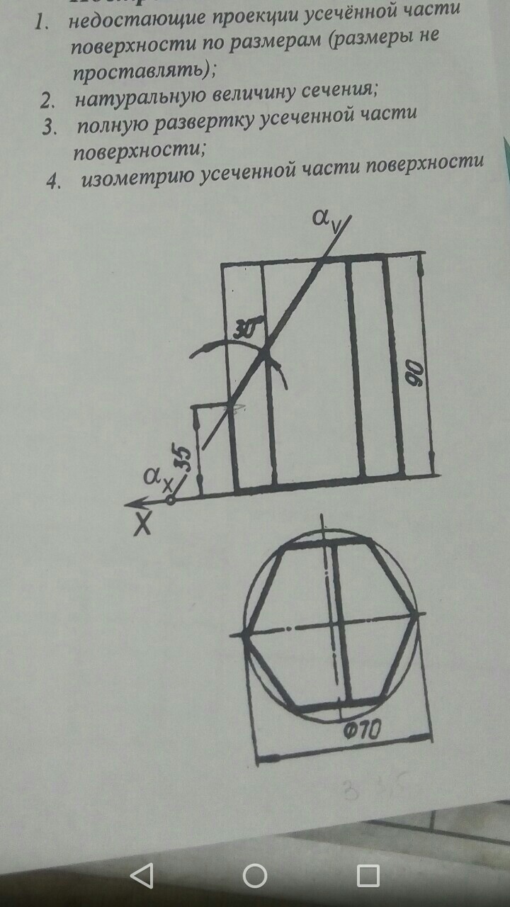 Помогите! недостающию проекцию усечённой я сделал и вид слева но остальное ПОМОГИТЕ сделать всё на фото написанно