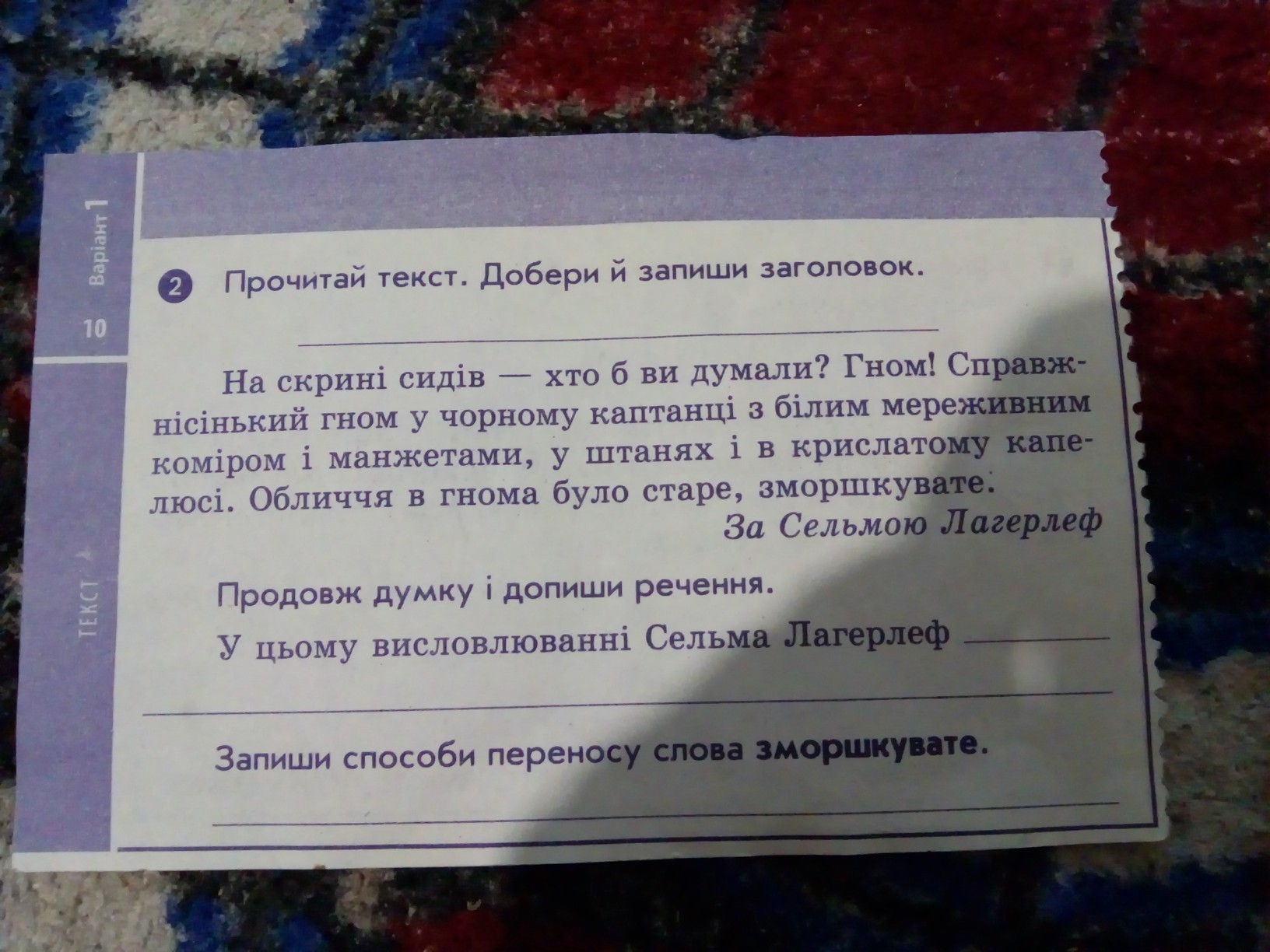 2. У цьому висловлюванні Сельма Лагерлеф описував зовнішній вигляд гнома.