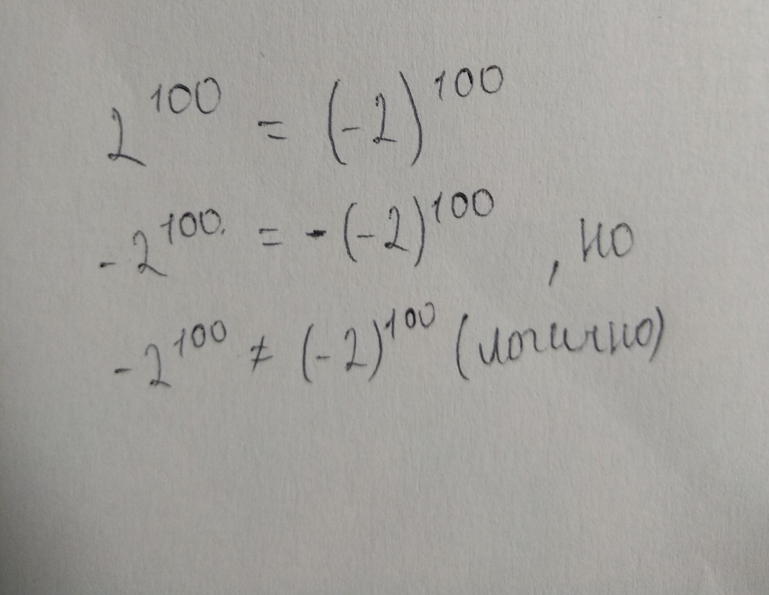 Есть ли тут выражения принимающие равные значения? Последнее там -(-2) в 100 степени